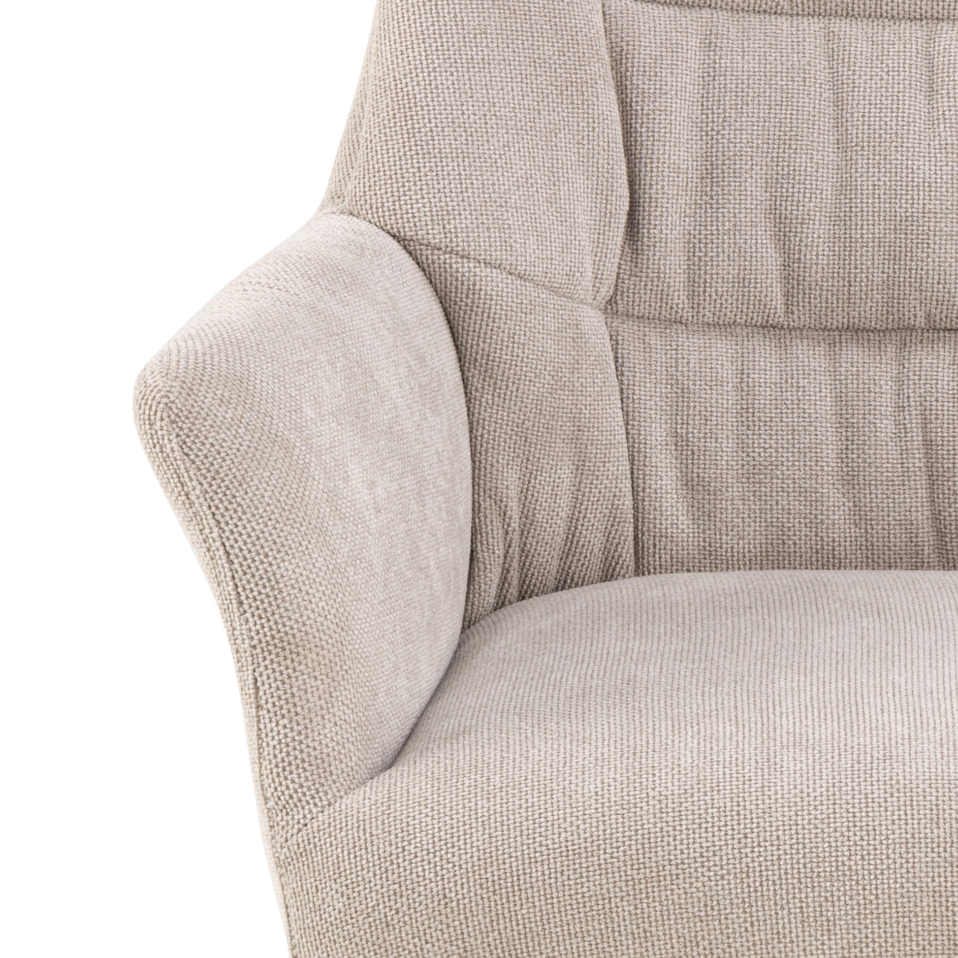 - excellence and detail oriented: upholstered in structured beige chenille fabric with an irresistibly soft touch, the horizontal stitching adds subtle texture for an elevated, refined aesthetic.