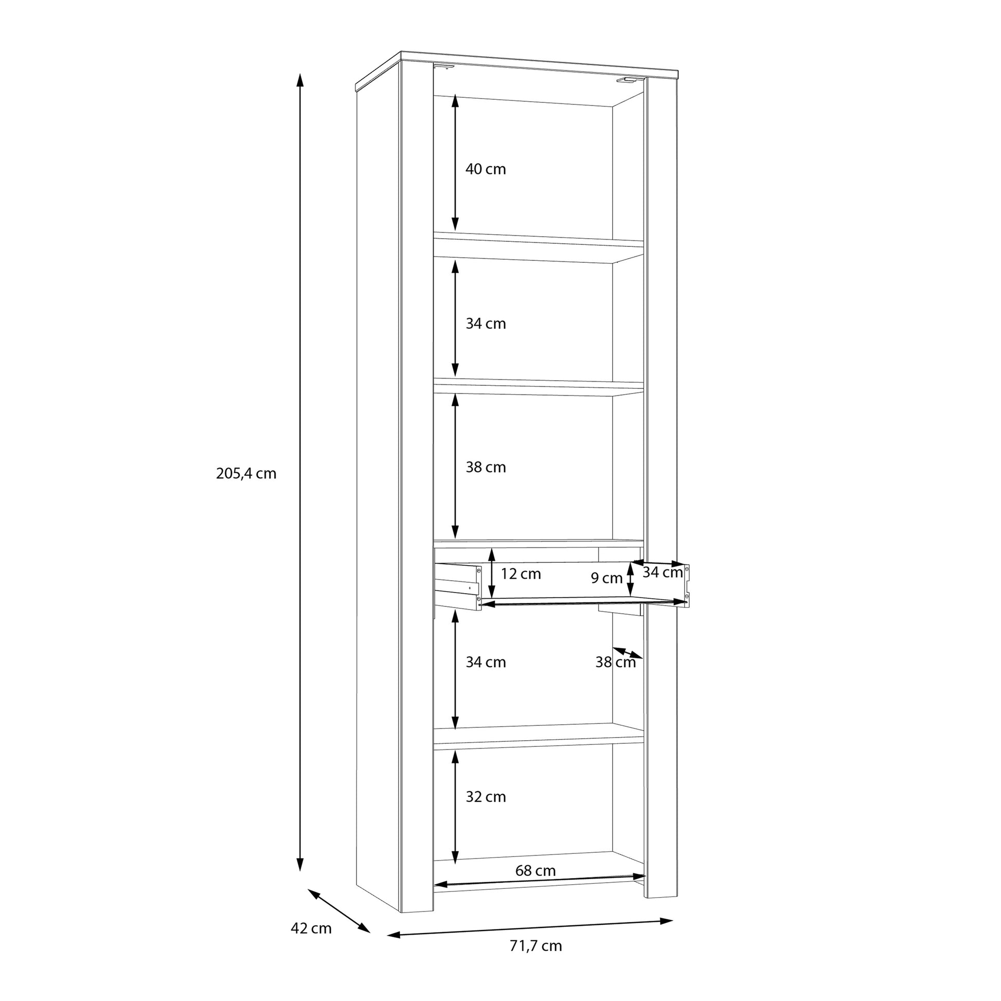 product specifications- size in cm: w 71.7 x h 205.4 x d 42 cm