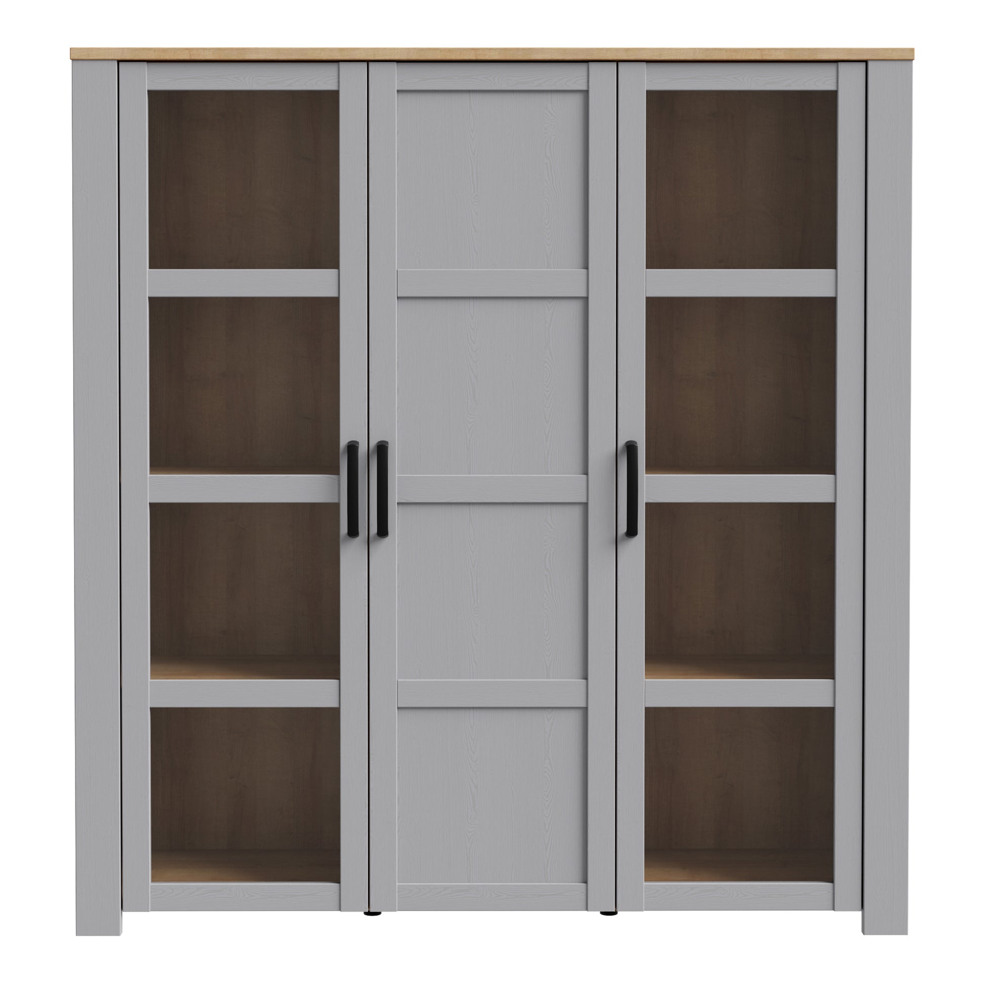 bohol 3 door large display cabinet in riviera oak/grey oak