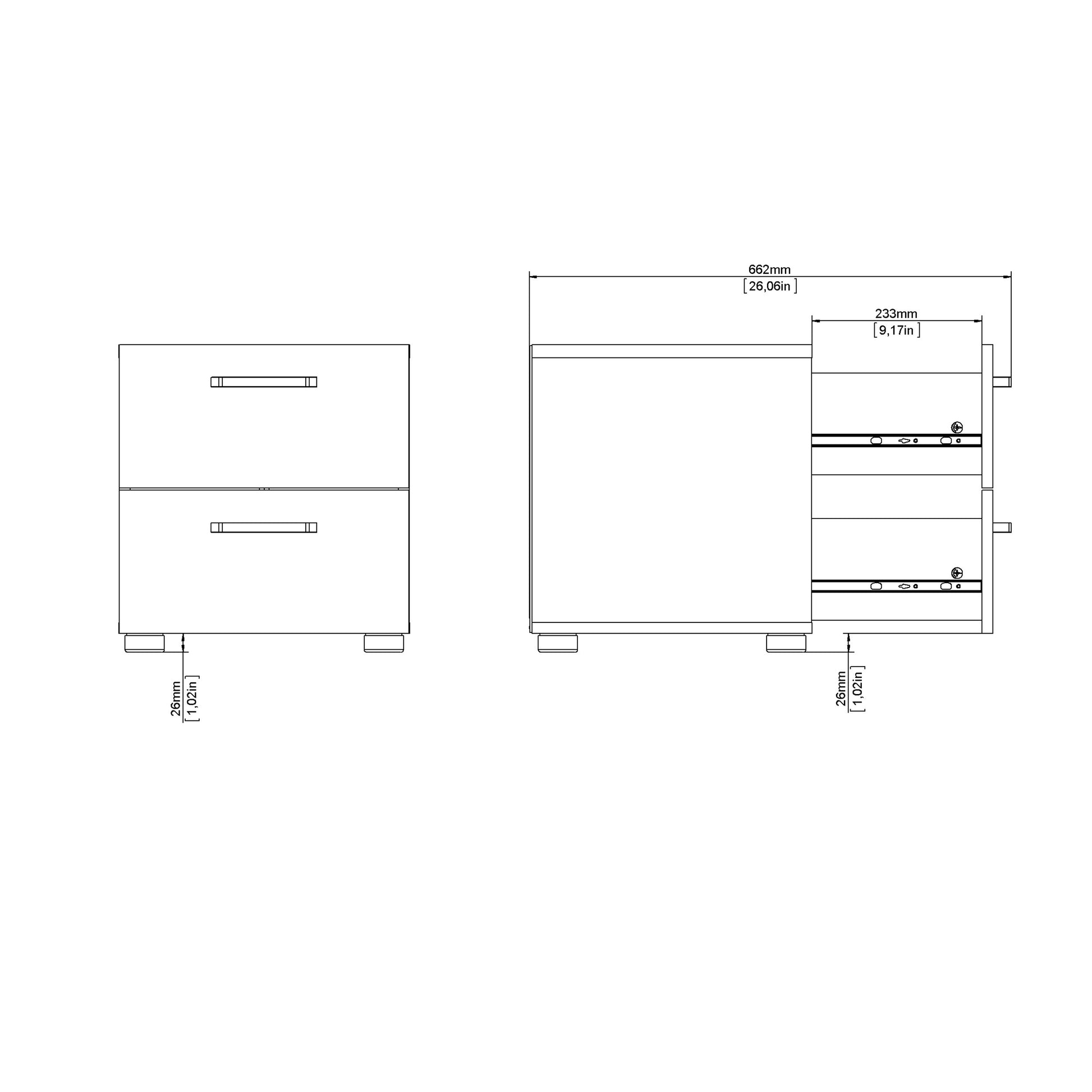 featuring two spacious drawers, this nightstand is equipped with modern plastic black handles and retracts smoothly on metal glides with built-in safety stops. the steel brackets provide added support to the bottom of each drawer, ensuring that this piece stays sturdy even with daily use. the dallas 2 drawer nightstand is made from engineered wood and is expertly crafted in denmark, featuring a scandinavian look and design that is both stylish and practical. the components are pre-drilled and pre-cut, making assembly a breeze.