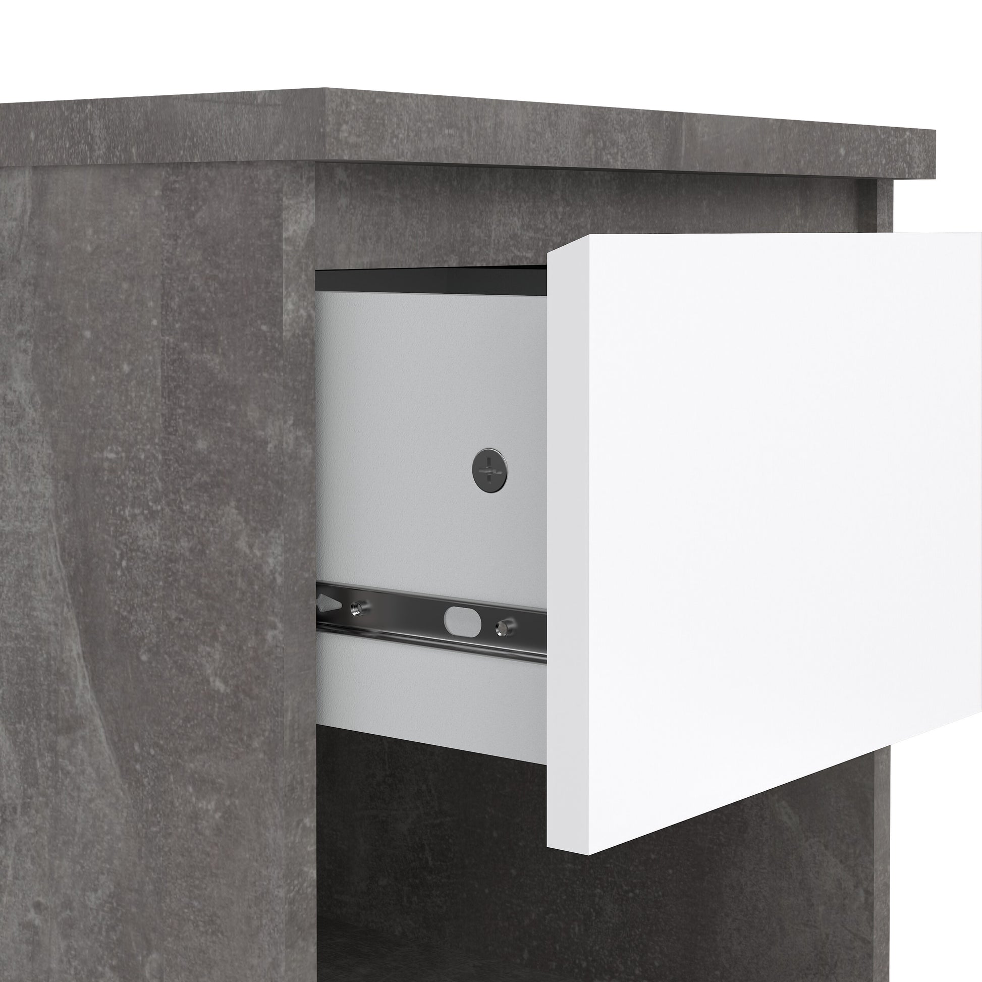 naia bedside 1 drawer 1 shelf in concrete and white high gloss