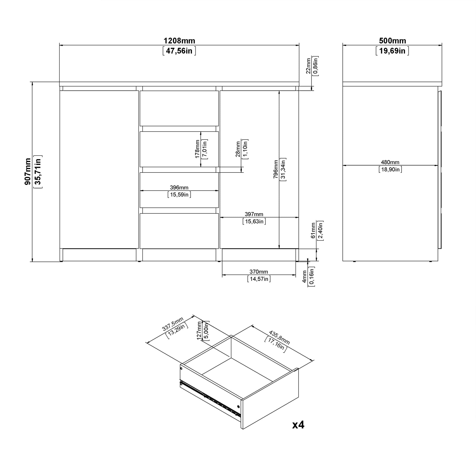naia sideboard - 4 drawers 2 doors in black matt the naia collection offers a tribute to timeless furniture design with a modern edge.
