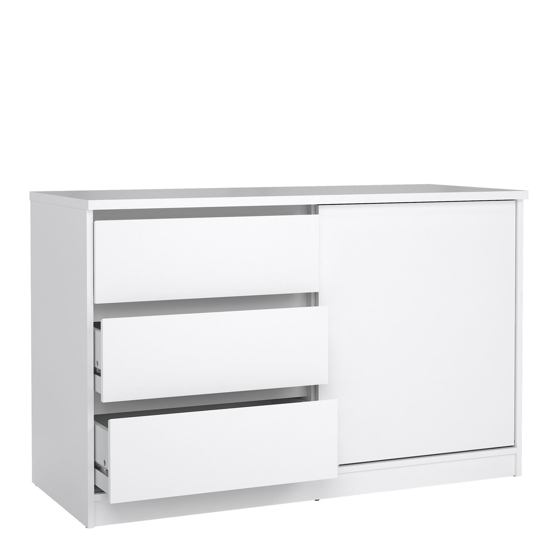 naia storage unit with 1 sliding door and 3 drawers in white high gloss