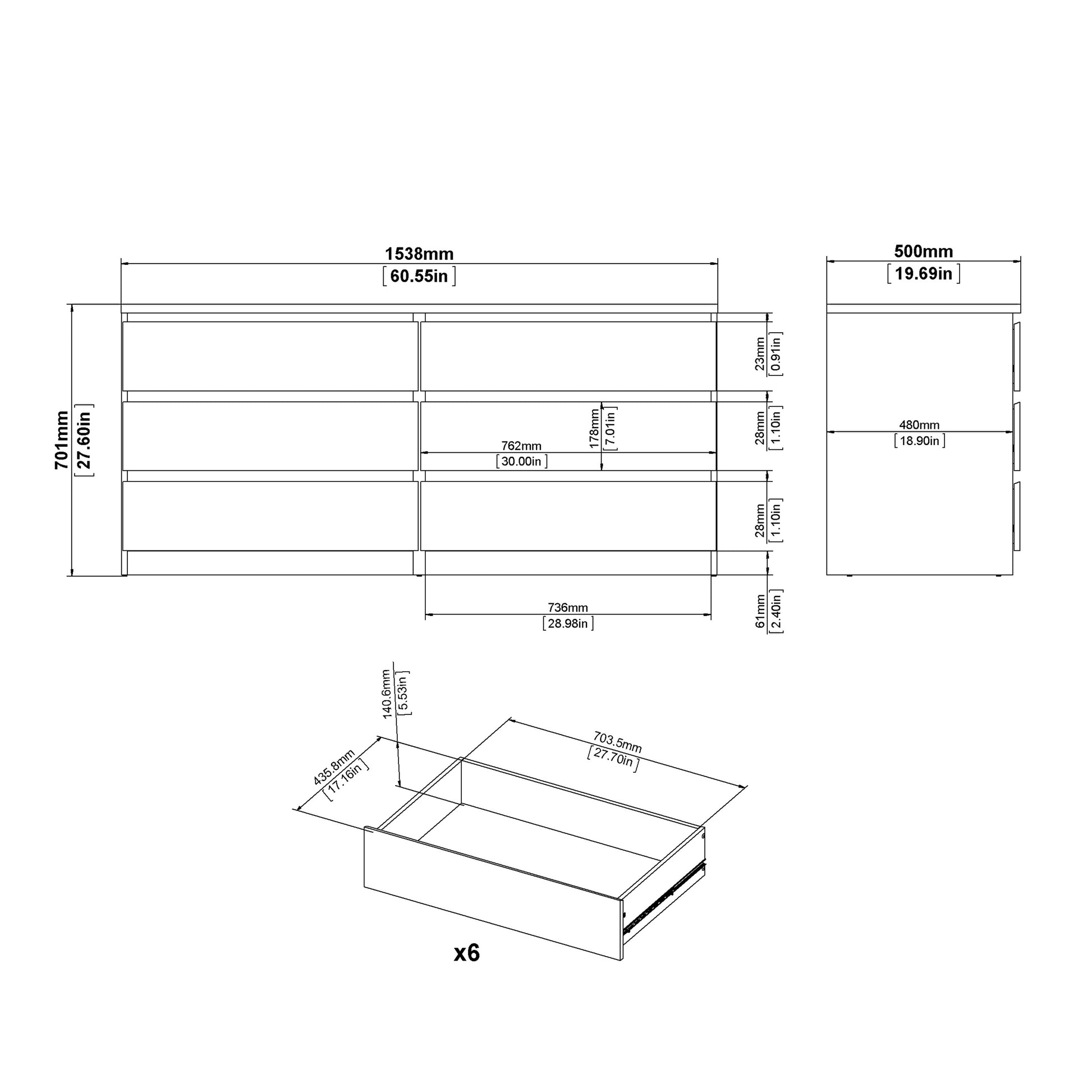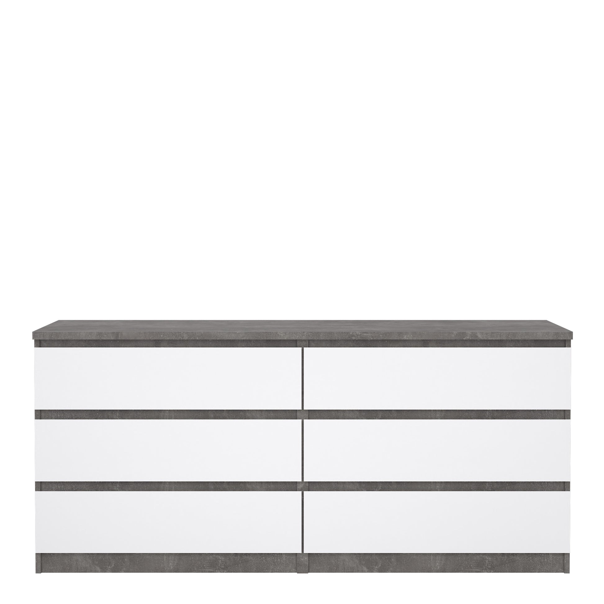 naia wide chest of 6 drawers (3+3) in concrete and white high gloss