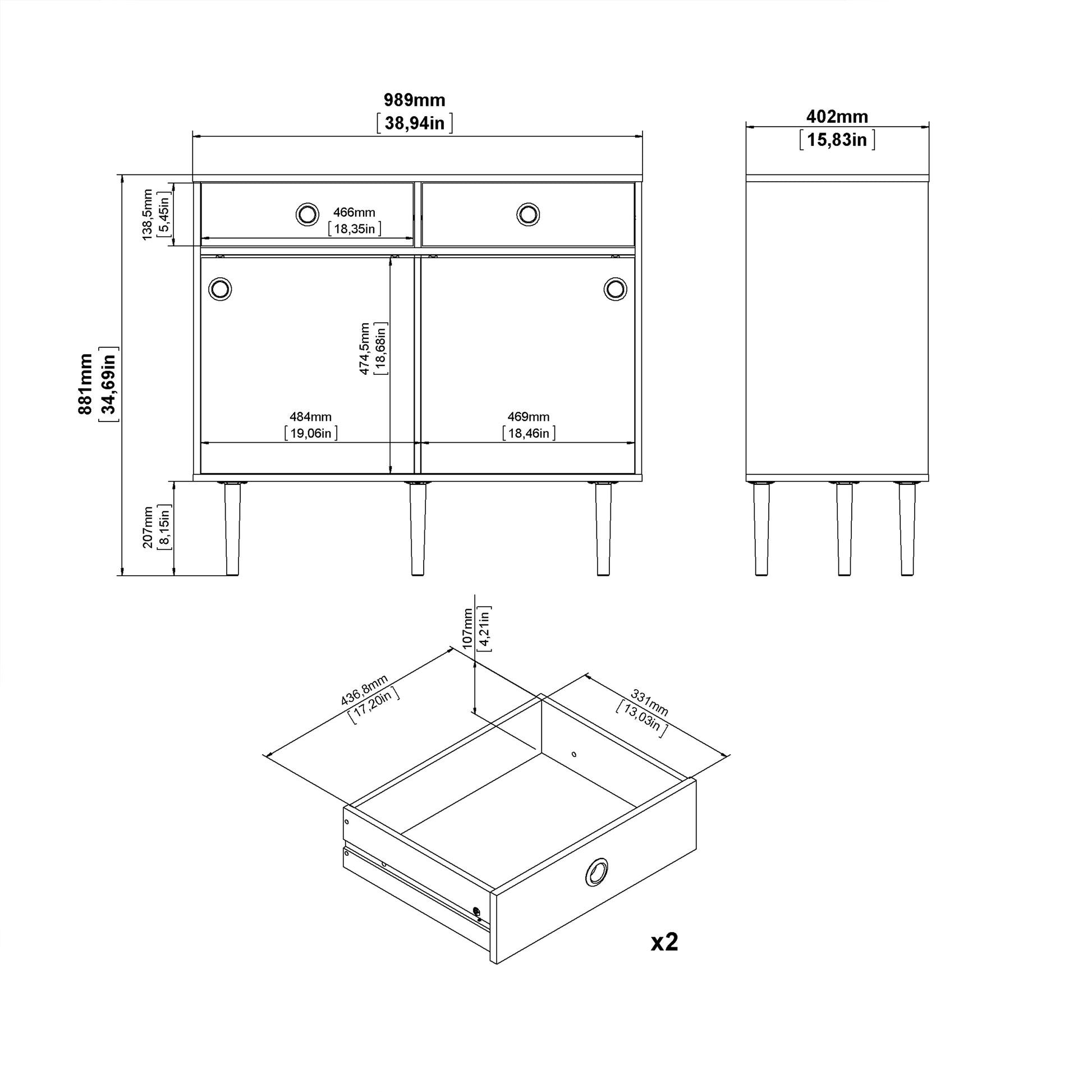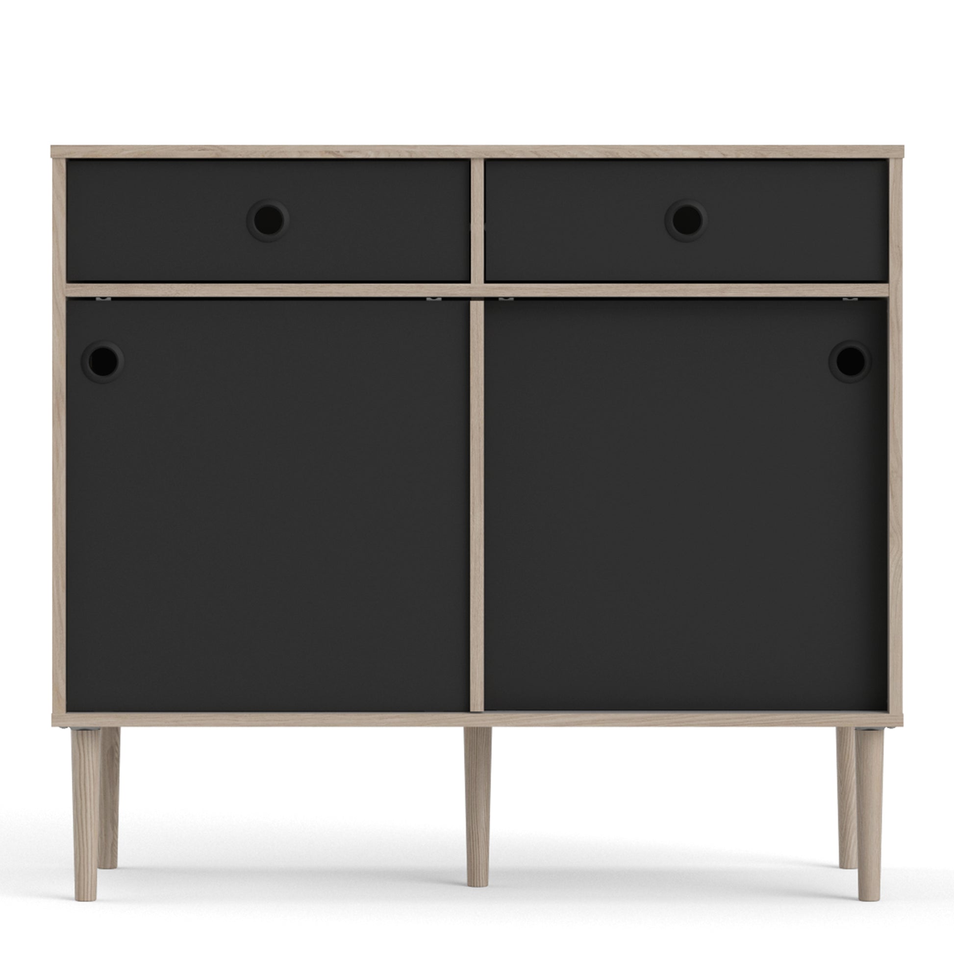 rome sideboard 2 sliding doors 2 drawers in jackson hickory oak and matt black