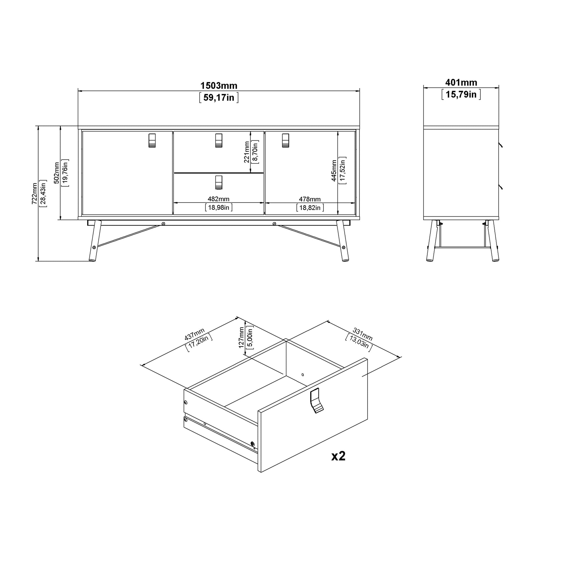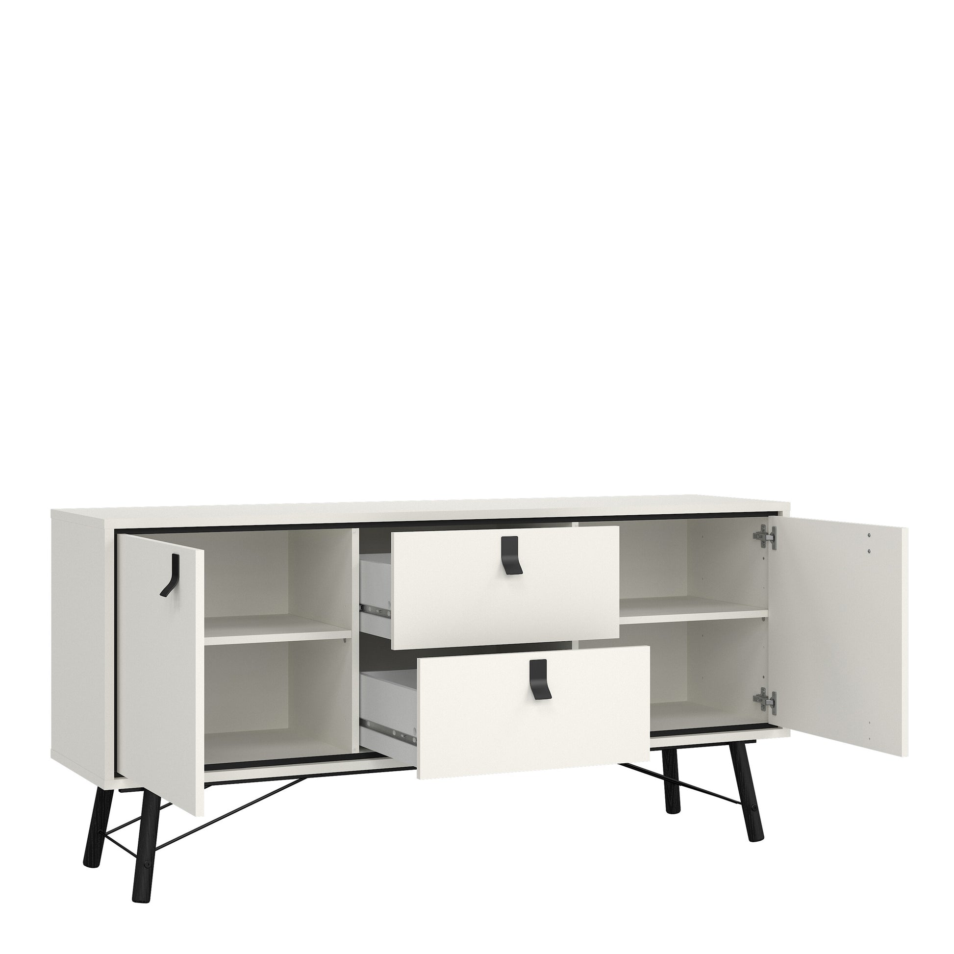 ry sideboard 2 doors + 2 drawers in matt white the ry range is both modern and refreshing with a clean design that would suit plenty of existing styles, whilst maintaining a timeless air that will keep it from falling out of fashion.